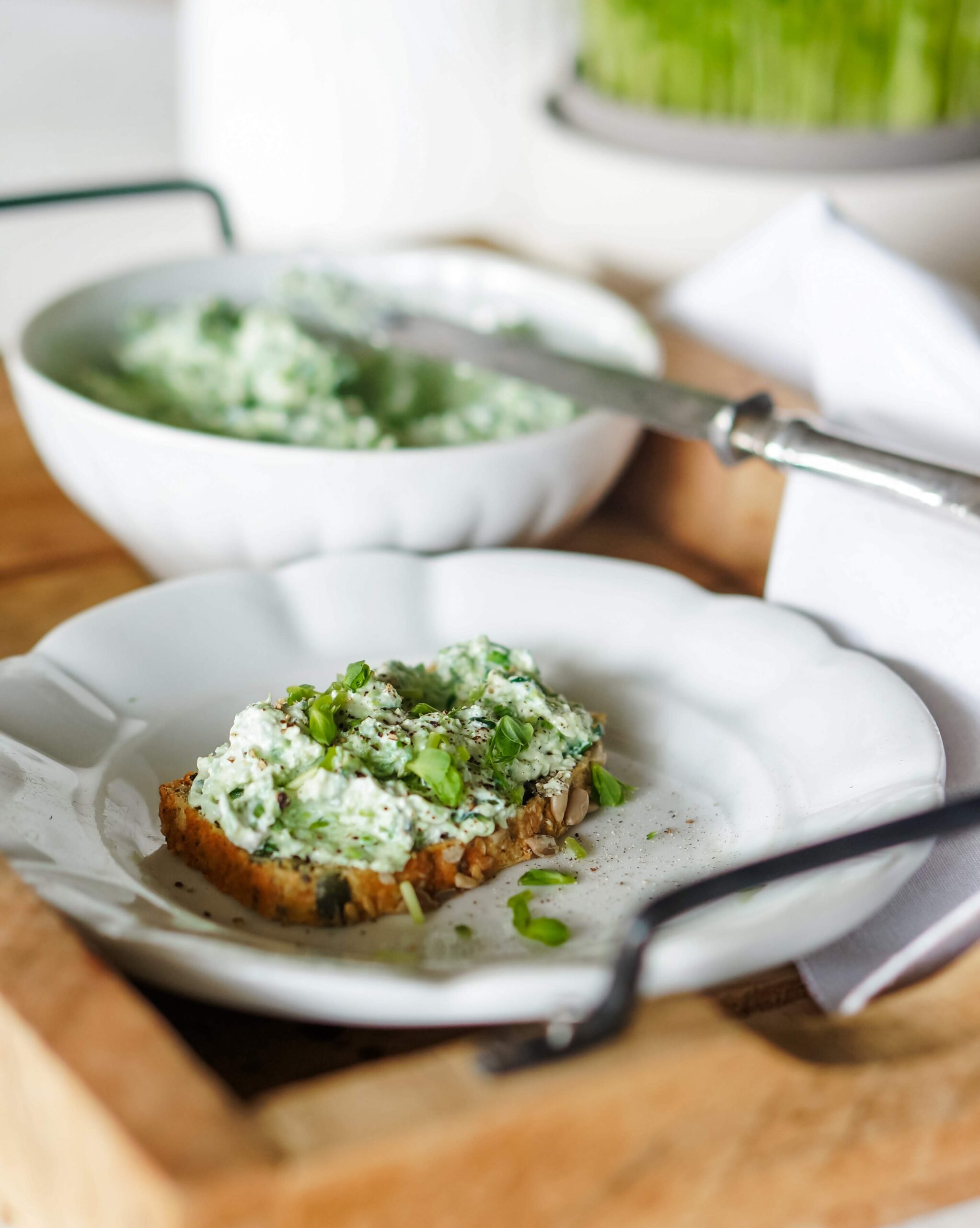 Skvělá je také rychlá jarní pomazánka z kefírového tvarohu s hráškem a bylinkami.